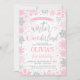 ¡Celebra tu primer cumpleaños con estas siempre tan lindas invitaciones sobre la temática del invierno de la Tierra de Oeste! Este colorido diseño se caracteriza por los copos de nieve en tonos pastel y el texto con un poco de plata brillante.