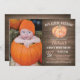 Invitación de la Calabaza Rustica de Primer Cumpleaños con foto personalizado. Fondo rústico de madera. Invitar al Fiesta de cumpleaños del niño o Chica. 1.ª 2ª 3ª 5ª 6ª Octava Novena, Cualquier Edad. Para una mayor personalización, haga clic en el botón "Personalizar" y utilice nuestra herramienta de diseño para modificar esta plantilla.