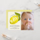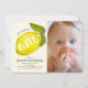Esta tierna y moderna tarjeta de invitación para el primer cumpleaños presenta una foto retrato y un gran limón amarillo sobre fondo de punto de polka amarillo limón claro. En el lado inverso se muestra el fondo de un punto polka amarillo limón. Perfecto para las fiestas de cumpleaños, fiestas en bloque, fiestas de graduación y fiestas de limpieza. Personalízalo para tus necesidades. Puedes encontrar productos coincidentes en mi tienda.