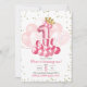 Invitación de primer cumpleaños a un globo de la Corona Rosa