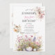 Una caprichosa invitación de cumpleaños con delicadas flores y mariposas. Perfecto para celebrar el mágico día de tu pequeña.
