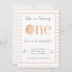 ¡Celebra el primer cumpleaños de tu pequeña con esta invitación mínima en globo rosa! Los tonos neutros hacen que esta invitación sea encantadora para todas las temporadas.