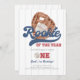 Celebra el gran día de tu pequeña novata con esta invitación de primer cumpleaños con tema de béisbol. Con un ilustracion guante clásico y un encanto deportivo, este diseño es perfecto para un fiesta "Rookie del Año" de niños con un estilo atemporal.