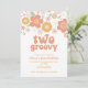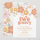 Inspiración retro Dos Groovy invitación para el segundo cumpleaños con flores estilo de los años 70 y fuentes y colores boho.