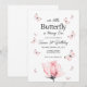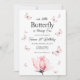 Invitación de primer cumpleaños de mariposa rosa