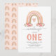 Celebra en color con nuestras invitaciones de primer cumpleaños rústicas bohemianas. Estableciendo el tono para un primer cumpleaños memorable, estas invitaciones presentan un vibrante arcoíris boho acuarela, flores rosadas elegantes y una plantilla moderna que es fácil de personalizar. Infunde el espíritu boho chic en el día especial de tu hijo desde el primer paso: la invitación.