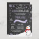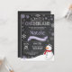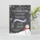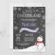 Invitación al primer cumpleaños de Omán en invierno.Niña bebé. Lavanda Lilac púrpura y copo de nieve blanco. Primer cumpleaños. Invitación del primer día del Chica. Fondo del tablero.Blanco y negro.