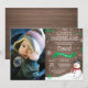 Invitación de primer cumpleaños con foto personalizado al invierno rústico Onederland Snowman. Niño o Chica. Copo de nieve verde y blanco. Primer cumpleaños. Invitar a los niños o Chicas de primer cumpleaños. Fondo De Madera Rústica. Para una mayor personalización, haga clic en el botón "Personalizar" y utilice nuestra herramienta de diseño para modificar esta plantilla. 㐰