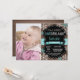 Invitación al primer cumpleaños del niño o Chica argentino con foto del personalizado. Turquesa Verde azulada y copo de nieve blanco. Primer cumpleaños. Invitar a los niños o Chicas de primer cumpleaños. Fondo de pizarra de madera rústica. Blanco y negro. Cinta turquesa Verde azulada Aqua. Para una mayor personalización, haga clic en el botón "Personalizar" y utilice nuestra herramienta de diseño para modificar esta plantilla.