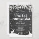 Invitación al cumpleaños de Onederland. Primer cumpleaños. Invitar a los niños o Chicas de primer cumpleaños. Fondo del tablero. Blanco y negro. Para una mayor personalización, haga clic en el botón "Personalizar" y utilice nuestra herramienta de diseño para modificar esta plantilla.
