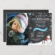 Invitación de primer cumpleaños de Onederland con foto de personalizado. Hombre de nieve y pingüino. Copo de nieve azul y blanco. Primer cumpleaños. Muchacho 1ª Invitación De Jueves. Fondo del tablero. Blanco y negro. Para una mayor personalización, haga clic en el botón "Personalizar" y utilice nuestra herramienta de diseño para modificar esta plantilla.