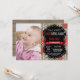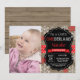 Invitación al primer cumpleaños del niño o Chica argentino con foto del personalizado. Copo de nieve rojo y blanco. Primer cumpleaños. Invitar a los niños o Chicas de primer cumpleaños. Fondo de pizarra de madera rústica. Blanco y negro. Cinta roja. Para una mayor personalización, haga clic en el botón "Personalizar" y utilice nuestra herramienta de diseño para modificar esta plantilla.
