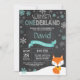 Invitación de primer cumpleaños de Onederland Fox. Fox. Turquesa Verde azulada y copo de nieve blanco. Primer cumpleaños. Invitar a los niños o Chicas de primer cumpleaños. Fondo del tablero. Blanco y negro. Para una mayor personalización, haga clic en el botón "Personalizar" y utilice nuestra herramienta de diseño para modificar esta plantilla.