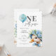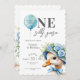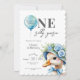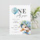 la historia de un hito alegre, muy primer cumpleaños, una celebración envuelta en amor, calor y un toque de fantasía. El diseño se centra alrededor de una gallina de los huevos encantadora, ilustrada con cariño como si se hubiera sacado de las páginas de un libro infantil muy querido. No es cualquier ganso —es "una gallina de los huevos", vestido para un fiesta con un gorra a rayas y una corona floral, aferrándose orgullosamente a un globo azul. Su expresión es de ojos abiertos, inocente y llena de personalidad, igual que un niño de un año descubriendo el mundo.