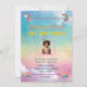 Se trata de una invitación de cumpleaños con temática de unicornio de color pastel para el primer cumpleaños de un niño. Presenta un fondo caprichoso con suaves tonos arcoiris, ilustraciones unicornios y una foto centrada del niño de cumpleaños. El texto incluye detalles del evento, como la fecha, la hora, la ubicación y la información de RSVP. Ideal para una celebración mágica y divertida. ¡personalizar para un toque personal!