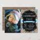 Invitación de primer cumpleaños de Winter Onederland Boy con foto personalizado. Copo de nieve azul y blanco. Primer cumpleaños. Muchacho 1ª Invitación De Jueves. Fondo de pizarra de madera rústica. Blanco y negro. Cinta azul. Para una mayor personalización, haga clic en el botón "Personalizar" y utilice nuestra herramienta de diseño para modificar esta plantilla.