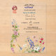¡Celebra el gran día de tu pequeña con esta encantadora invitación de cumpleaños con temática de flor silvestre! Con una preciosa niña vintage, flores silvestres brillantes y una tipografía elegante con un fondo transparente, esta invitación es perfecta para un tema de boho o fiesta de jardín. Personalice con el nombre, la fecha y los detalles del fiesta de su hijo para obtener un toque realmente especial. ¡Ideal para los cumpleaños de verano y las celebraciones al aire libre!