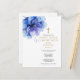 Esta invitación de primera comunión floral en acuarela azul polvoriento, moderna y elegante, puede ser personalizada con su información en tipografía negra y dorada moderna. Diseñada por Thisisnotme©