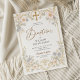 Celebre el sagrado hito de su hija con esta elegante invitación de Primera Comunión. Cuenta con un delicado borde ondulado, ilustraciones religiosas en dorado suave (cruz, vela, cáliz) y un marco de foto ovalado. Perfecta para comuniones tradicionales, rústicas o modernas