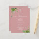 Esta elegante tarjeta de invitación de primera comunión con eucalipto botánico de color rosa polvoriento puede ser personalizada con su información en tipografía chic con iniciales de monograma en el reverso. Diseñado por Thisisnotme©