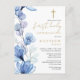 Invitación de primera comunión floral azul polvori