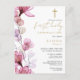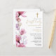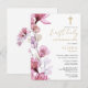 Esta elegante tarjeta postal de invitación de primera comunión floral transparente rosa polvo se puede personalizar con su información en tipografía chic con su monograma en el reverso. Diseñado por Thisisnotme©