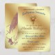 Invitación de primera comunión en oro con imagen del cáliz y datos de la celebración {cambiar por los suyos]. El reverso muestra un ángel también sobre oro.