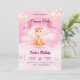 La invitación típica para una fiesta de princesa ilustrativa con acuarela rosa presenta elementos suaves y caprichosos en tonos de rosa con texturas delicadas de acuarela. Puede incluir ilustraciones de una princesa, diademas, castillos o acentos brillantes, creando un tema soñador y de cuento de hadas. El texto de la invitación a menudo está escrito en fuentes elegantes y cursivas para combinar con el tono real, invitando a los invitados a una celebración mágica. ¡Perfecto para fiestas de cumpleaños temáticas de princesas para niños o eventos reales especiales!