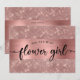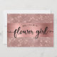 Pide a tus amigos y familiares que sean parte de tu boda con esta tarjeta chic en rosa dorado "¿Quieres ser mi dama de flores?" con foil de rosa dorado y fondo brillante. Tenga en cuenta que no se utilizará foil real.