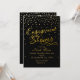 Invitación de punto de Relieve metalizado dorado y negro con ducha de compromiso.
