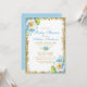 Floral azul acuarela y dorado con invitación Baby Shower Purpurina dorado - Azul espalda