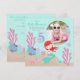 Dulce tarjeta de invitación de quinto cumpleaños de sirena con criaturas submarinas y una plantilla de inserción de fotos.