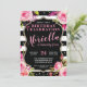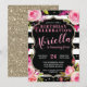 Esta Invitación de Raya Negra y Blanca Floral es completamente personalizable para cualquier evento. Esta invitación está actualmente configurada para ser una elegante invitación de cumpleaños con rayas negras y blancas, acentos florales rosados y detalles de purpurina de oro falso. Asegúrese de seleccionar personalizar más si desea utilizar esto para otro evento para acceder a la plantilla completamente personalizable. Esta invitación es popular para cumpleaños, despedidas de soltera, fiestas de soltera y mucho más.