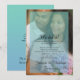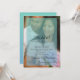 Invitación de recepción con superposición de ombre azul turquesa y azul con tu foto como fondo sobre un fondo de damasco floral gris claro. Son perfectas para una celebración después de la boda. Si deseas una confirmación de asistencia por separado, por favor contáctame a través de mi tienda. Personaliza con tu propia información y foto.