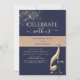 Invitación de recepción de boda azul marino dorado