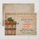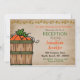Esta invitación con tema de otoño es perfecta para una recepción informal después de la boda. El diseño incluye una cesta de calabazas, una línea de flores de otoño y un fondo desgastado.
