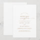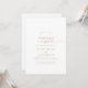 Esta invitación de recepción de boda con escritura dorada moderna es perfecta para una fiesta minimalista después de una fuga. El diseño de color dorado amarillo simple presenta tipografía de letras industriales únicas con estilo boho moderno. Personalizable en cualquier color. Mantenga el diseño minimalista y elegante, tal como está, o personalícelo agregando sus propios gráficos y arte. Las tarjetas de RSVP se venden por separado, o puede agregar información de RSVP al dorso de la tarjeta.