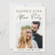 Elegante anuncio de elopement / boda pequeña y recepción / invitación a la fiesta de celebración. La parte delantera presenta su foto de boda y "Fiesta de siempre después de la felicidad" en una mezcla de tipografía simple y una escritura moderna y chic. Debajo de su foto, agregue sus nombres y la fecha de la boda. En el reverso, personalice su mensaje y agregue los detalles de la fiesta o recepción y sus nombres en una escritura similar a una firma.