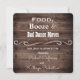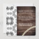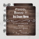 Una hermosa invitación de recepción de boda. Una cerca de madera rústica y un patrón floral vintage gris y blanco con perlas. En la parte delantera está el saludo, "Comida, bebida y movimientos de baile malos". Agregue el nombre de la novia y el novio. Personalización línea por línea en la parte trasera.