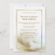 Una invitación de recepción después de la boda con pluma de oro elegante.