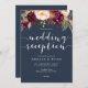 Soñador se reúne con rústico con esta invitación de recepción de boda floral en burgundy y marina. Agregue sus propias palabras en la plantilla debajo del hermoso título de letra. Tarjetas a juego disponibles o póngase en contacto con nosotros para tener una pieza personalizada hecha!