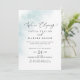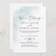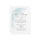 Esta invitación de recepción de fuga azul con técnica de acuarela es perfecta para una fiesta moderna después de la fuga. El diseño simple y clásico presenta un toque de color azul pastel con estilo elegante minimalista. Las tarjetas de RSVP se venden por separado, o puede agregar información de RSVP en el reverso de la tarjeta.