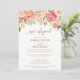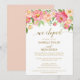 Esta invitación de recepción de fuga con flores de peonía rosa y melocotón es perfecta para una elegante fiesta de fuga. El diseño floral presenta una hermosa disposición de peonías en acuarela en tonos rosa y coral combinados con una delicada caligrafía de lámina de oro falsa. Las tarjetas de RSVP se venden por separado.