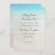 Invitación de recepción de boda de dólares de arena para los recién casados después de su ceremonia privada. El agua azul tropical y la arena de la playa son el fondo con grandes imágenes de dólares de arena en ambos lados. Incluye información del matrimonio, como fecha y ubicación, y luego invita a los invitados a festejar con la pareja.