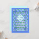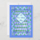 Tarjeta de anuncio de nacimiento de bonito para un niño, con un diseño tipo colcha de mosaico en azul, lila y verde, pintado a mano por Judy Adamson. Los detalles en el reverso de la tarjeta son sólo sugerencias y totalmente personalizables, al igual que el color del reverso de la tarjeta.