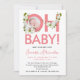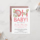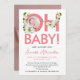 Esta moderna invitación de recién nacido tiene un gran audaz guión rosa pastel que dice OH baby y algunos delicados adornos florales y blancos. La parte trasera está con una foto del personalizable y el nombre de su bebé. Está disponible tanto en formato de impresión como de descarga digital.