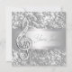 Elegante fondo blanco plateado con plantilla de invitación a evento musical y recital de clave de sol plateada. Esta elegante invitación de clave de sol es perfecta para una invitación a un concierto, recital de piano, invitación a una sinfonía o cualquier otra actuación musical. Para personalizar para su evento, simplemente elija el botón naranja "¡Personalízalo!" para comenzar a agregar los detalles de su evento, estilo de fuente, tamaño y color de fuente y redacción. Tenga en cuenta que todos los diseños de invitaciones que encontrará en Zazzle son gráficos impresos en papel stock plano sin partes o piezas elevadas o agregadas.