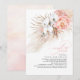 Invitaciones de regaderazo de parejas de acuarela elegantes con orquídeas blancas, rosas rosadas, follaje tropical seco y hierba de pampas