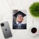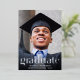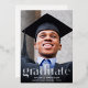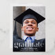 Una elegante y elegante invitación de graduación que muestra la foto de tu graduado con "Graduado" escrito en un moderno y grande tipo de Relieve metalizado de plata real y su nombre, colegio y año de clase.