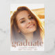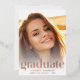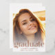 Una elegante y elegante invitación de graduación que muestra la foto de tu graduado con "Graduado" escrito en un moderno y grande tipo de Relieve metalizado de oro rosa y su nombre, colegio y curso de clase en moderna tipografía blanca.